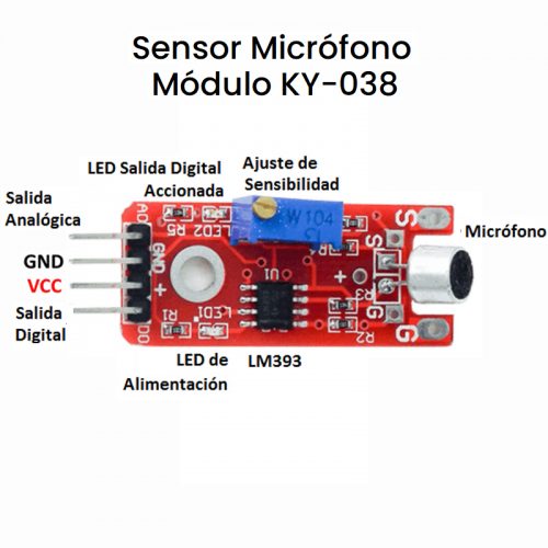 El módulo KY-038 es un sensor de detección de sonido que se utiliza para medir la intensidad del sonido en el ambiente. Está diseñado con un micrófono de condensador de electret, que es capaz de capturar los cambios en la presión del sonido y convertirlos en una señal eléctrica.